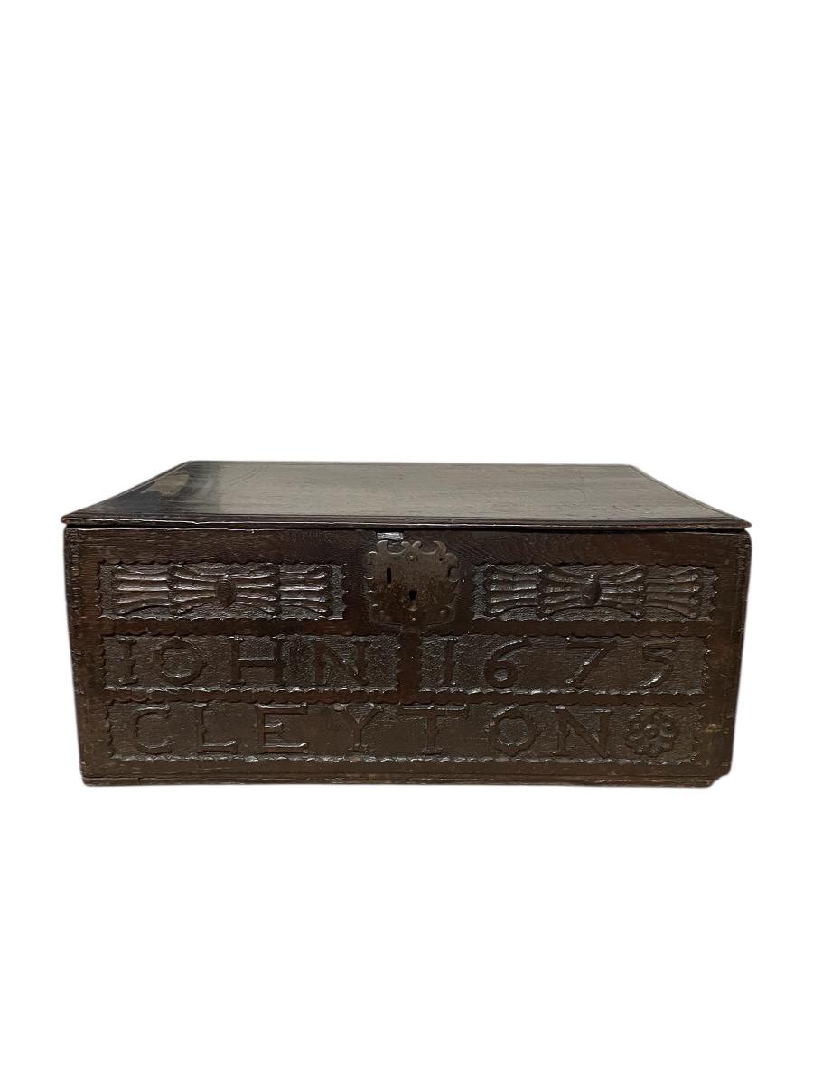 Bible box in oak in excellent condition and quality from Wales dated 1675.