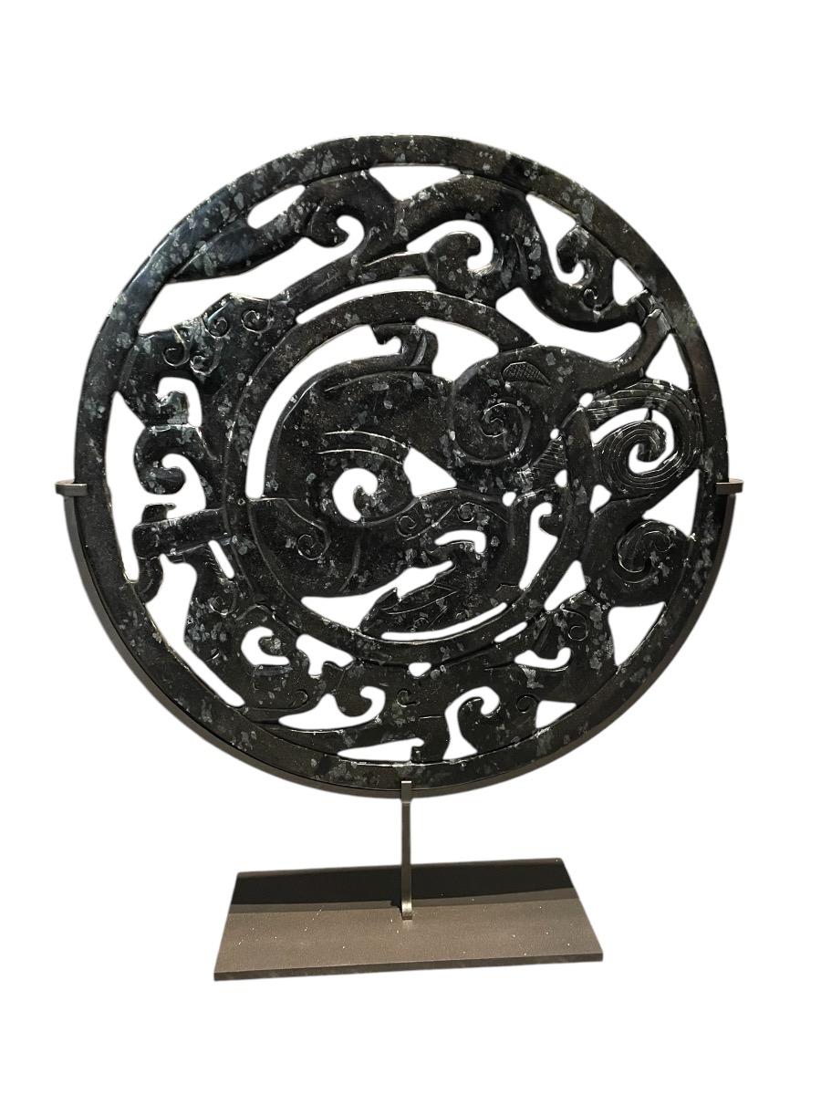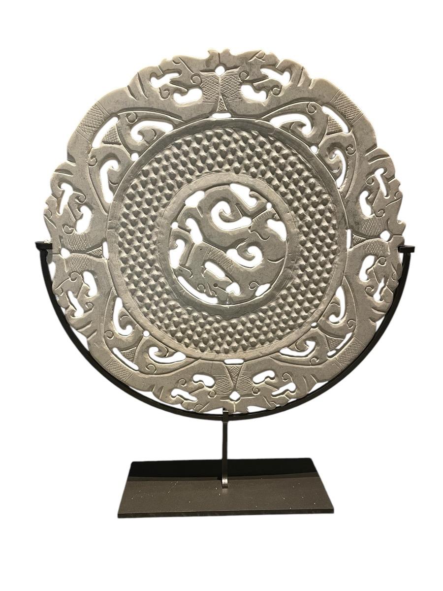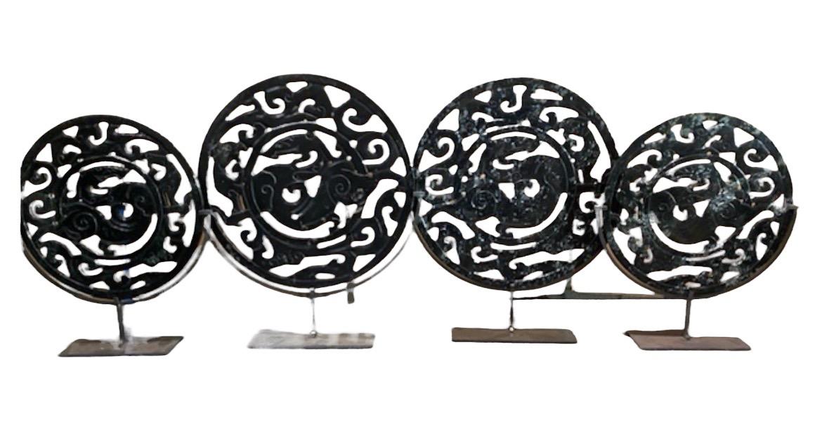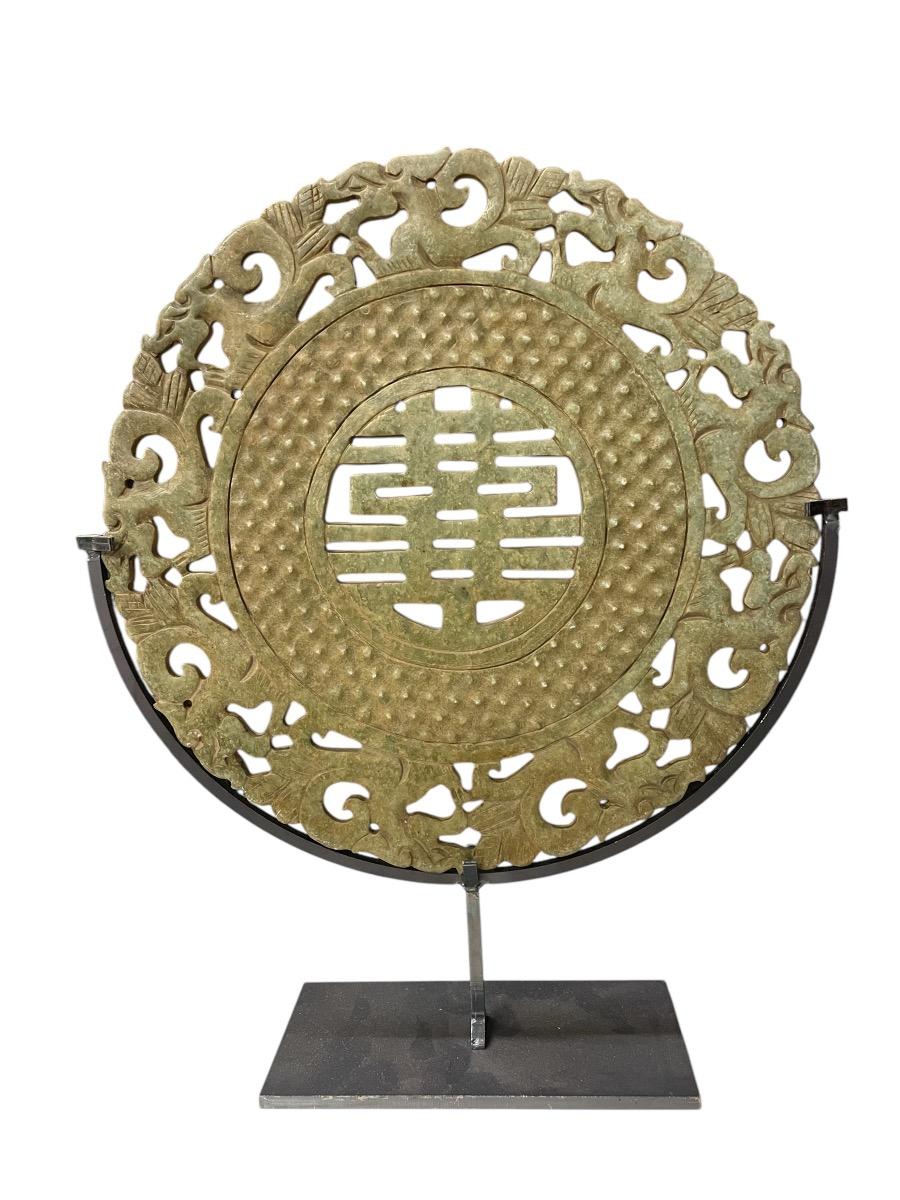 20cm, 25cm and 30cm in Marble & jade. Adorned with dragon motifs and double happiness. White Marble and celadon green Jade, black stone carvings.