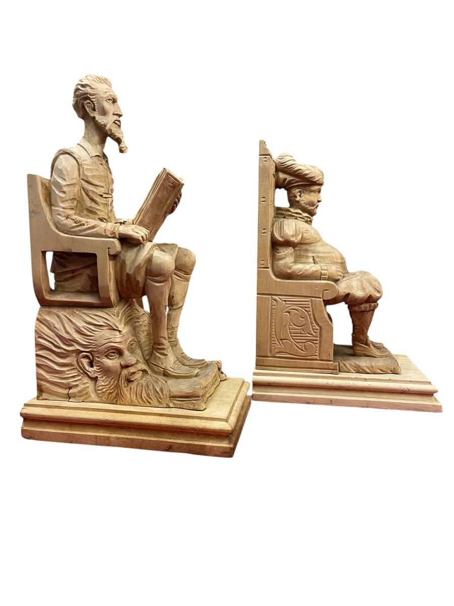 Houten beeldjes met Don Quichot en Sancho Panza. 10cm br x 24cm d x 29cm h