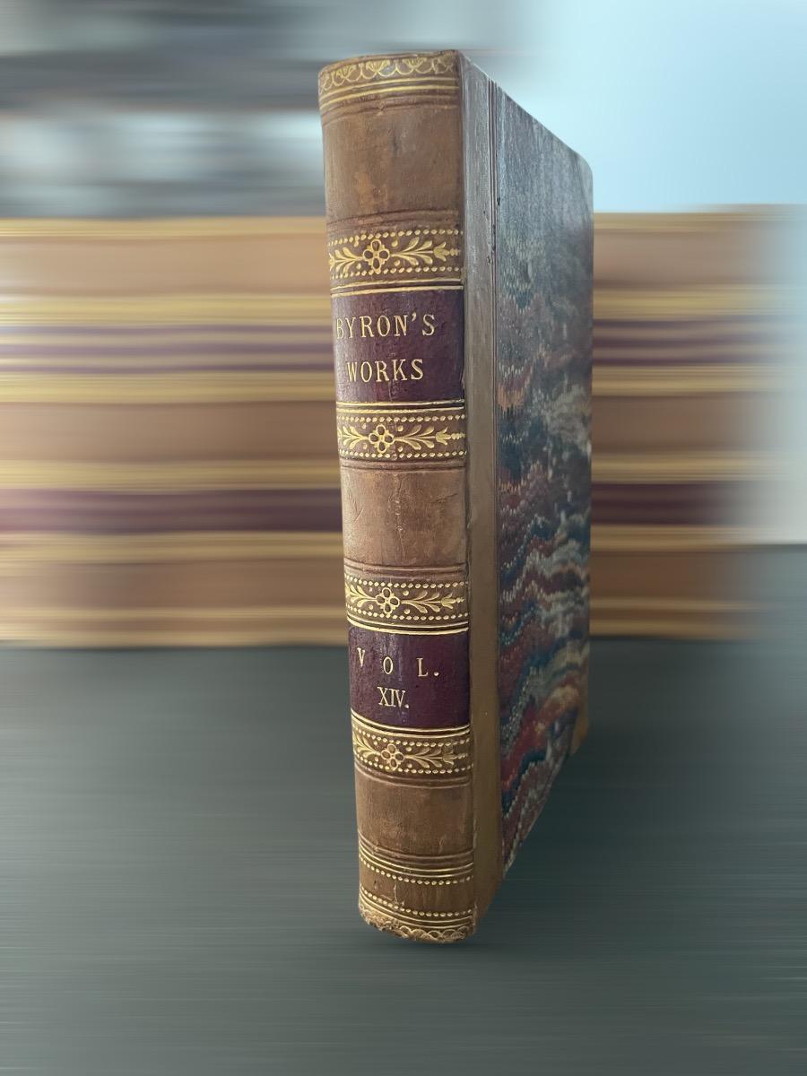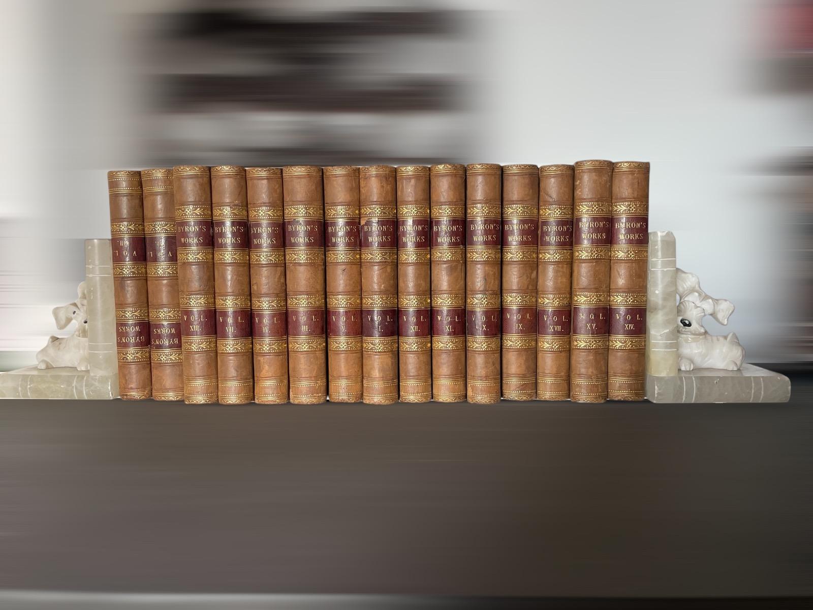 Een set van 16 stuks boeken in hand geschilderd omslag en in leder rug afgewerkt